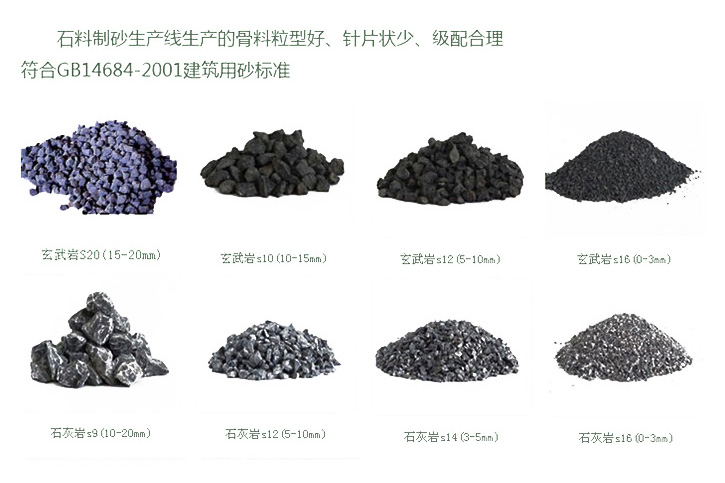 石料生產線和制砂生產線的流程:石料生產線的生產流程大致為:(料倉)->振動給料機->顎式破碎機->反擊式破碎機->振動篩->(成品石料),各設備中間以溜槽或皮帶輸送機相連。大塊石料經料倉由振動給料機均勻地送進鄂式破碎機進行粗碎,粗碎后的石料由膠帶輸送機送到反擊式破碎機進行進一步破碎;細碎后的石料由膠帶輸送機送進振動篩進行篩分,篩分出幾種不同規(guī)格的石子,滿足粒度要求的石子由成品膠帶輸送機送往成品料堆;不滿足粒度要求的石子由膠帶輸送機返料送到反擊式破碎機進行再次破碎,形成閉路多次循環(huán)。成品粒度可按照用戶的需求進行組合和分級,為保護環(huán)境,可配備輔助的除塵設備。